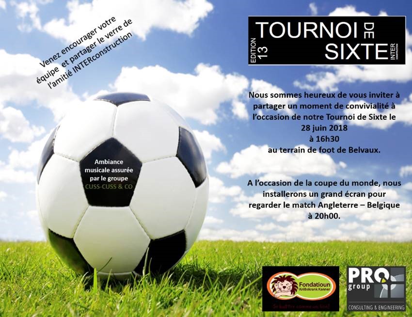 Un énorme MERCI à PROgroup s.a. qui depuis 2009 organise chaque année le tournoi de foot « tournoi sixte » inter-construction et qui depuis remet chaque année le chèque des recettes à la Fondation.